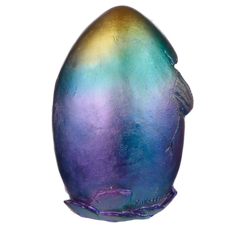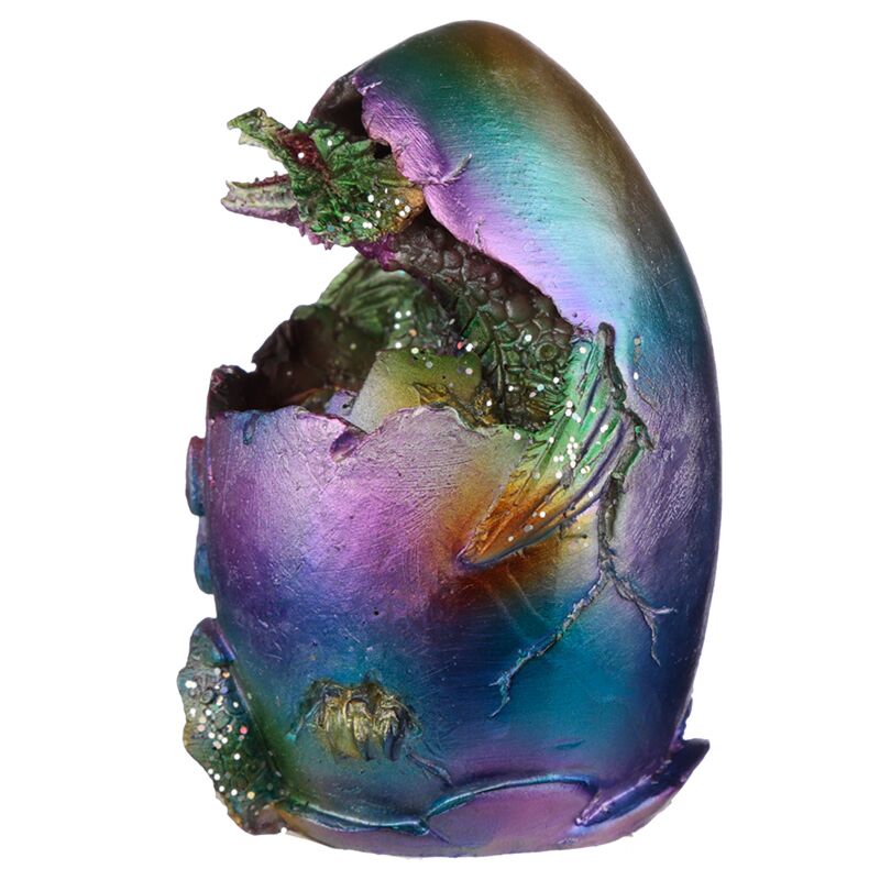 Figurka - Tęczowy smok wykluwający się z metalicznego jajka