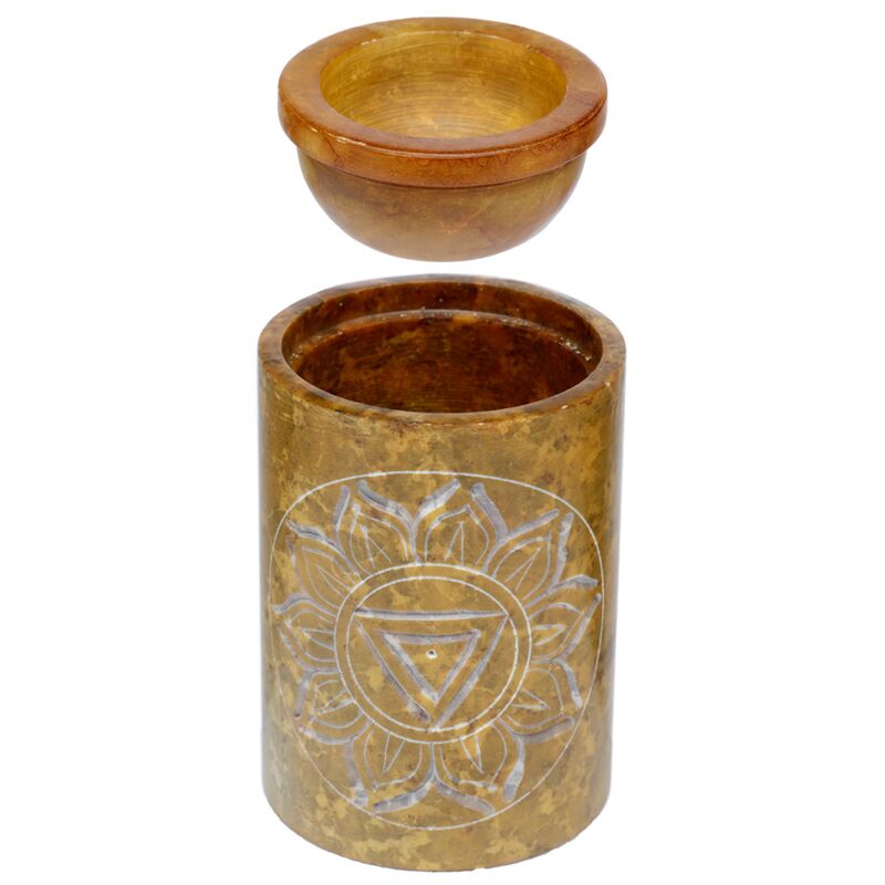 Kominek - podgrzewacz do olejków - Czakra - żółty rzeżbiony
